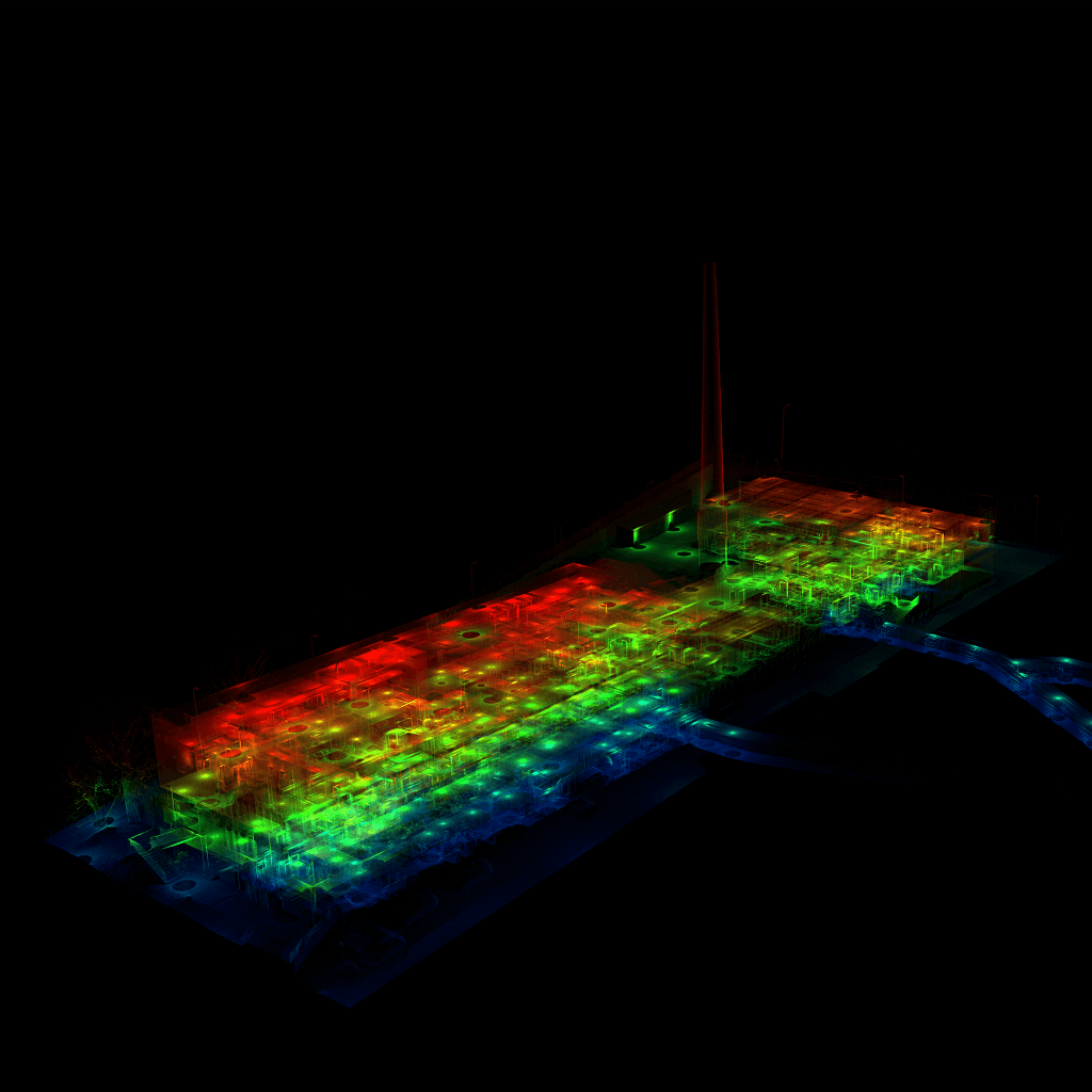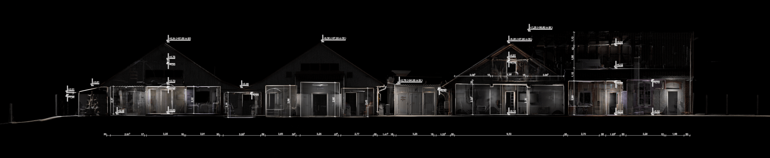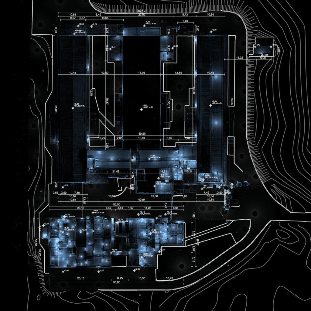 A projekt során feladatunk volt egy tojásüzem csarnokainak és szociális épületének külső és belső felmérése. Az 8000 m²-es területen három szociális épületrész és öt csarnok található, összesen 3100 m² beépített területtel. A szociális épület belső területeinek összetettsége miatt magas mérési számokkal tudtunk teljesíteni. A felmérést az üzemek folyamatos működése miatt csak az időszakos tisztítások alatt végezhettük el, így a munkát öt ütemben valósítottuk meg. Minden mérési szakasz után a frissített pontfelhőket elküldtük az építész megrendelőnknek, így párhuzamosan tudta végezni tervezési munkát. Összesen több mint 300 mérésből készült egy részletes pontfelhő, amely alapot adott az építész számára a felmérési tervek elkészítéséhez.